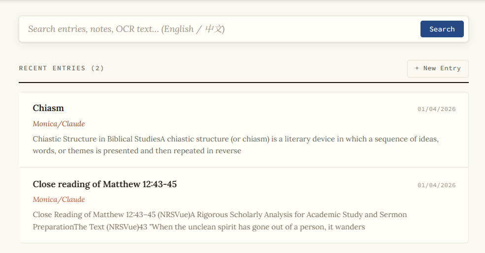 我也請AI替我寫了個自家網站,主力在查閱經文。因為功力所限,加上網上開源的東西不多,所以只能湊合用著。我的目標很基本,就是用regular expression以關鍵字搜尋。目前只有和合本及NetBible可用。